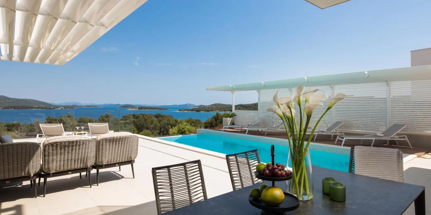 Boasting air-conditioned accommodation with a balcony, Exquisite Murter Villa Villa Luxor 4 Bedrooms Heated Pool & Spa & Gym Jezera is situated in Jezera.
