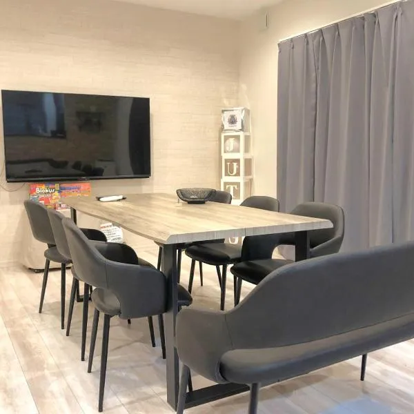 最大23名宿泊 源泉温泉 ホームシアター 客室8部屋 那須グリーン温泉, una struttura con giardino e attrezzature da barbecue, si trova a a Nasu a 26 km da Stazione di Shirakawa, 27 km da Castello Shirakawa Komine e 1 km da Nasu Toy...