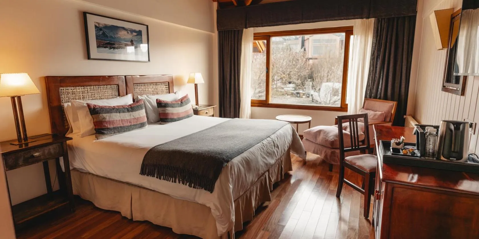 Featuring a classic alpine-style décor, the hotel offers cosy rooms with panoramic views of Ushuaia Bay and the Beagle Channel.