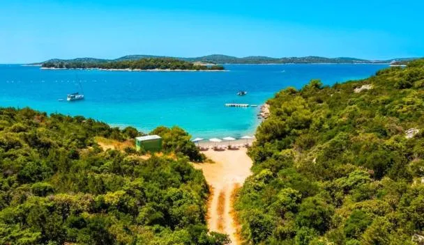 Spread on 20 ha of land in the shade of thick pine trees, Camping Park Soline Mobile homes is beautifully located next to a sandy and pebble beach close to Biograd.