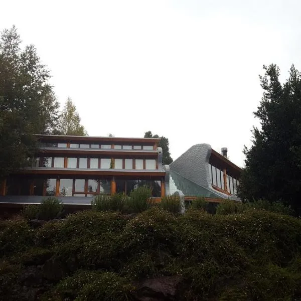 Greeting guests with its beautiful lobby chimney, this hotel offers accommodations on the shores of Villarrica Lake.