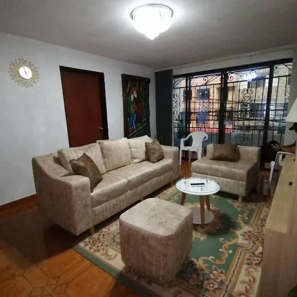 Offering a shared lounge and quiet street view, Habitación acogedora en ambiente familiar al norte de Medellín is located in Bello, 19 km from Lleras Park and 11 km from Explora Park.