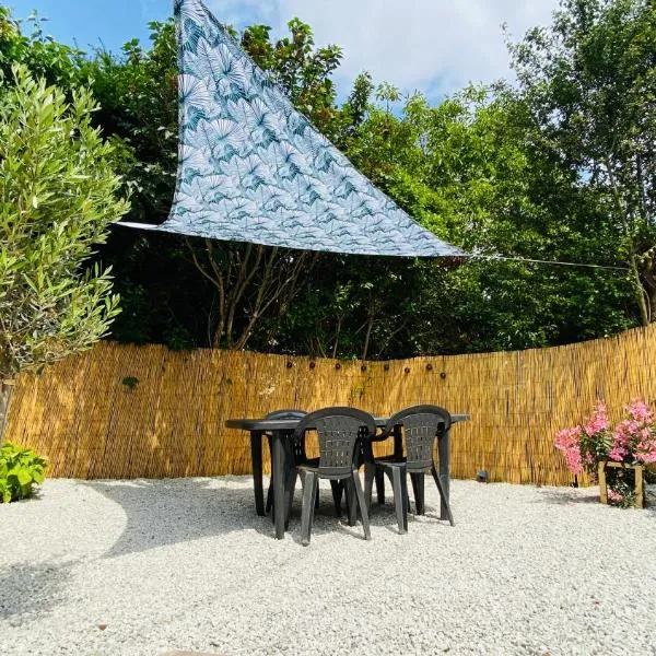 Tiny house se nachází v destinaci Hermanville-sur-Mer a nabízí terasu. Pláž Sword Beach se nachází 2,5 km odtud, Gare de Caen 14 km a Mémorial de Caen 16 km. Tato chata má také soukromý bazén.