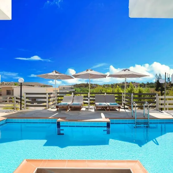 Facing the beachfront, Tarra Seaside Hotel offers 4-star accommodation in Georgioupolis and features a seasonal outdoor swimming pool, garden and shared lounge.