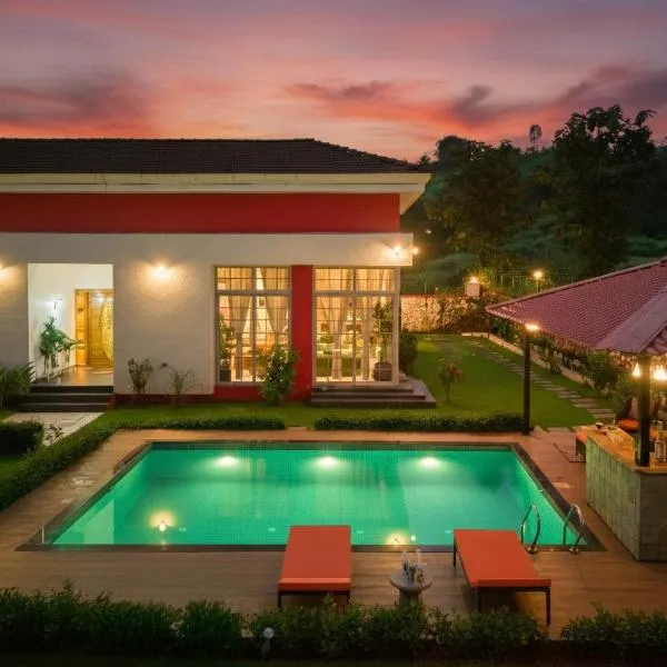 SaffronStays Midori - 4BR riverside villa with pool, lawn, terrace & access to Kundalika River rafting site se nachází v destinaci Kolád a poskytuje kola zdarma, venkovní bazén, zahradu a ubytování s...