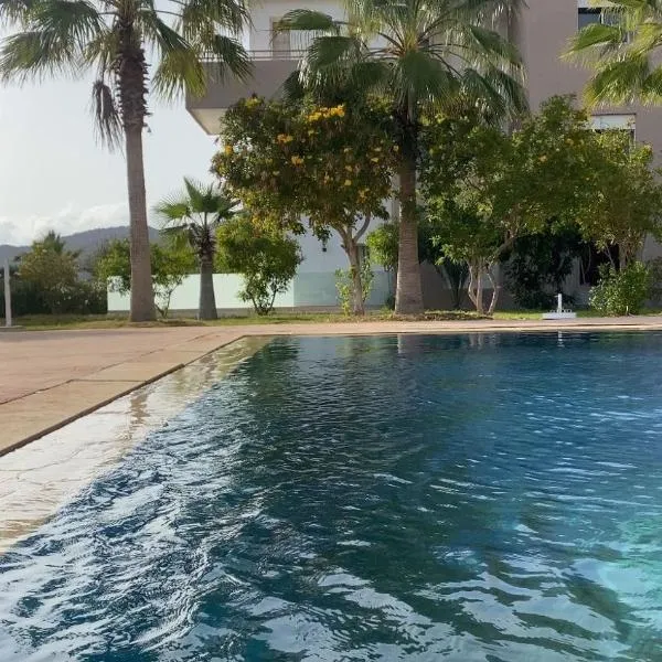 Appartement familial avec piscine Imi Ouaddar is gelegen in Imi Ouaddar, op 15 minuten lopen van Atlantica Parc Aquatique, en biedt een woonkamer met een flatscreen-tv.