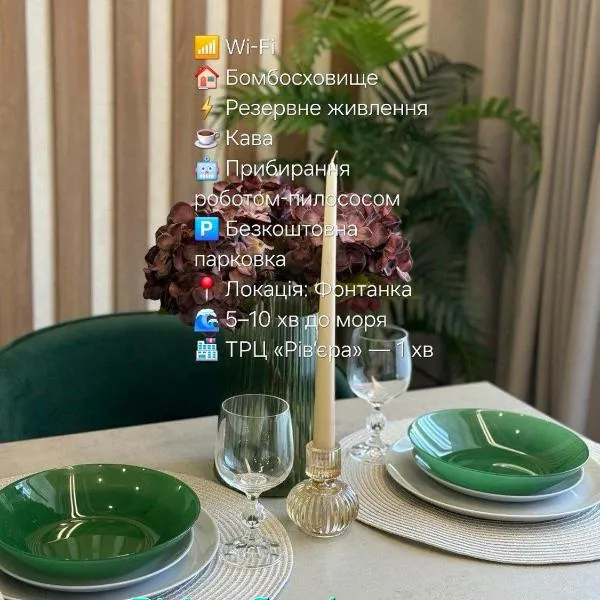 Стильная квартира ЖК Ривьера Сити se nachází v destinaci Fontanka a nabízí ubytování s kuchyní. Pláž Yacht se nachází 2,4 km odtud a Vlakové nádraží Odesa-Holovna 19 km.