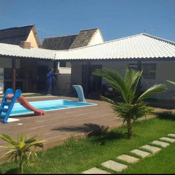Casa a 3 minutos da praia si trova a Saquarema e mette a disposizione una piscina privata, un patio e la vista sulla piscina.