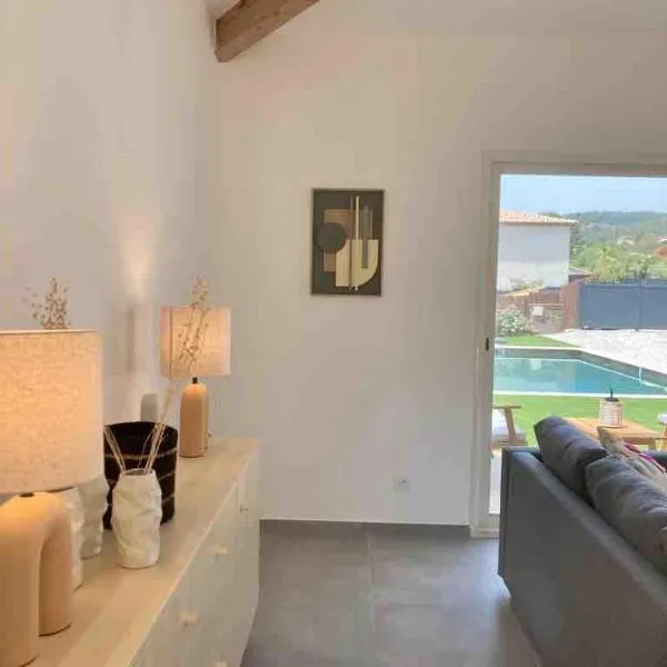 Con vista sulla piscina, Maison charmante à Cogolin + Piscine prevede un alloggio dotato di piscina all’aperto stagionale e balcone, a circa 6,4 km da Chateau de Grimaud.