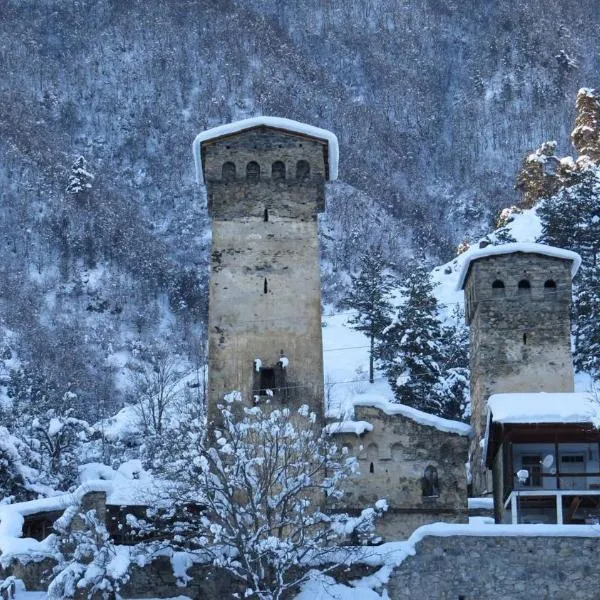 Cottage TowerView in Mestia bevindt zich in Mestia, op minder dan 1 km van Museum voor Geschiedenis en Etnografie, en biedt accommodatie met een tuin, gratis WiFi en een 24-uursreceptie.