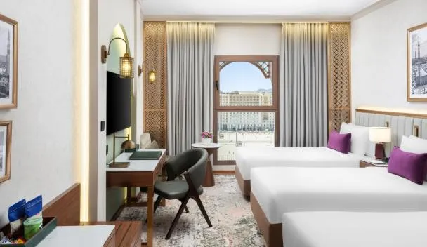 Dar Al Eiman Al Harm hotel is a 5-star hotel located in the northern area, just a few steps from the main gate of Al Haram, a prime location near the main ladies' entrance.