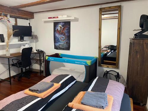 Comfortable Accommodation: Fire TV, Zimmer mit Arbeitsplatz im Stadtzentrum in Waiblingen offers a homestay experience with free WiFi. Guests can enjoy a shared kitchen, minimarket, hairdresser/beautician, and bicycle parking. Modern Amenities: The property features a bath, hairdryer, refrigerator, work desk, shared bathroom, seating area, free toiletries, slippers, TV, electric kettle, and kitchenware. Convenient Location: Located 31 km from Stuttgart Airport, the homestay is close to Porsche-Arena (12 km), Cannstatter Wasen (13 km), and other attractions. Cycling activities are available.