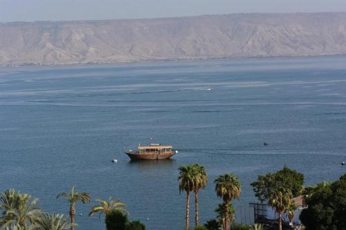 Beachfront and Terrace: Boutique Lake Kinneret Apartment in Tiberias offers direct beachfront access and a spacious terrace. Guests can relax by the lake or enjoy stunning mountain views. Comfortable Living: The apartment features one bedroom, a bathroom, and a comfortable living room. Amenities include air-conditioning, a balcony, and a fully equipped kitchen with modern appliances. Convenient Facilities: Free WiFi, a lift, minimarket, family rooms, full-day security, and luggage storage are available. Paid on-site private parking is provided. Nearby Attractions: St. Peter's Church is an 8-minute walk away, Tomb of Maimonides less than 1 km, and The Scots Church a 6-minute walk. Haifa Airport is 56 km from the property.
