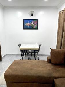 Serviced apartment is close to a major road which offers a blend of convenience and comfort for short or long stays. This fully furnished space includes a sleeping area, a serene environment having 24hrs light, and sitting area. Its location ensures easy access to different roads, shopping area, and local attractions, making it ideal for business travelers and tourists. It has a proximity of 17 mins to the Airport and 15 mins to GRA. It has amenities like housekeeping, semi orthopedic foam with fiber pillows, smart TV, and well secured environment which provide a hassle-free and enjoyable stay.