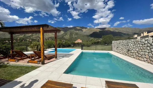 Chalet Nuevo Amanecer位于梅洛,配备全年开放的室外泳池,享有山景。这家自助式度假屋配有私人泳池、花园、烧烤设施、免费WiFi和免费私人停车位。 这家度假屋享有市景,提供露台,配有2间卧室、起居室、有线频道平板电视、设施齐全的厨房以及3间带坐浴盆和淋浴设施的浴室。这家空调度假屋还提供休息区以及3间带浴缸的浴室。 这家度假屋提供热水浴池。 里奥夸尔托机场距离住宿有200公里。