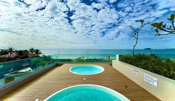 Boasting a year-round outdoor pool, a sauna and a hot tub, Apto Vista Mar Home Club Pé na Areia 3 Quartos Ares Condicionados Cozinha Completa Piscina Aquecida Jacuzzi Sauna Academia Quadra Playground...
