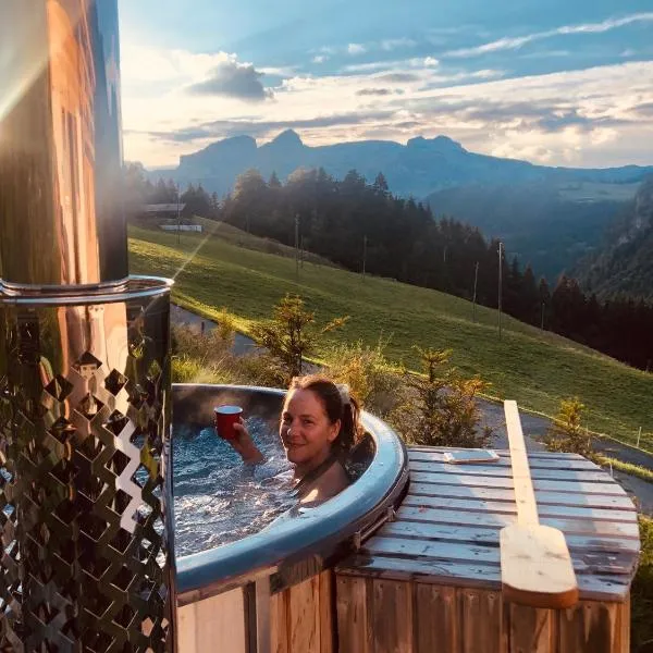 Chalet traditionnel avec jacuzzi extérieur se může pochlubit výhledem do zahrady a nabízí ubytování s balkonem a kávovarem. Gare de Montreux se nachází přibližně 36 km odtud.