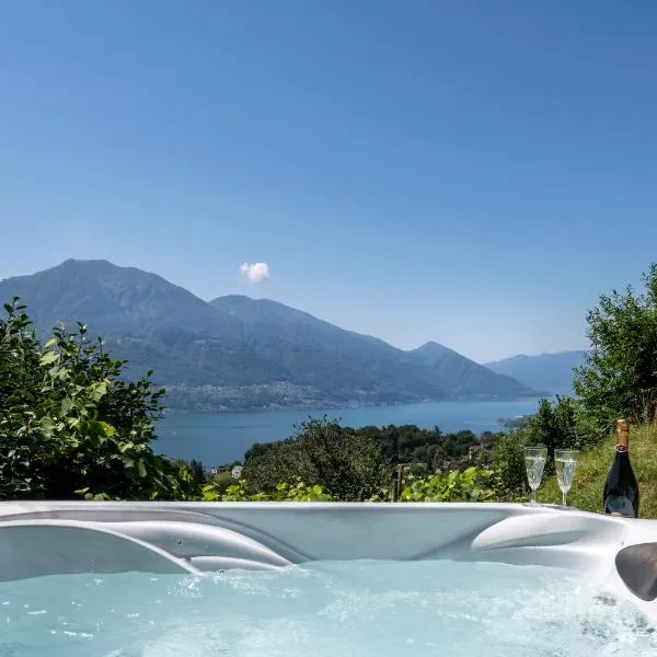 Casa Helios - traumhafte Seesicht, Jacuzzi, Sauna se může pochlubit výhledem na město a nabízí ubytování s terasou a patiem. Golf Club Patriziale Ascona se nachází přibližně 8,5 km odtud.