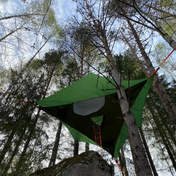Karula Stay - Exclusive Lakeside Camper & Floating Treetent Experience se nachází v destinaci Ähijärve a nabízí ubytování s posezením.