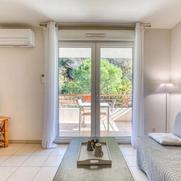 Con vista sul giardino, Appartement F2 climatisé avec terrasse et parking, proche des Thermes et du centre - Lamalou les Bains - FR-1-451-164 propone un alloggio dotato di giardino e terrazza, a circa...