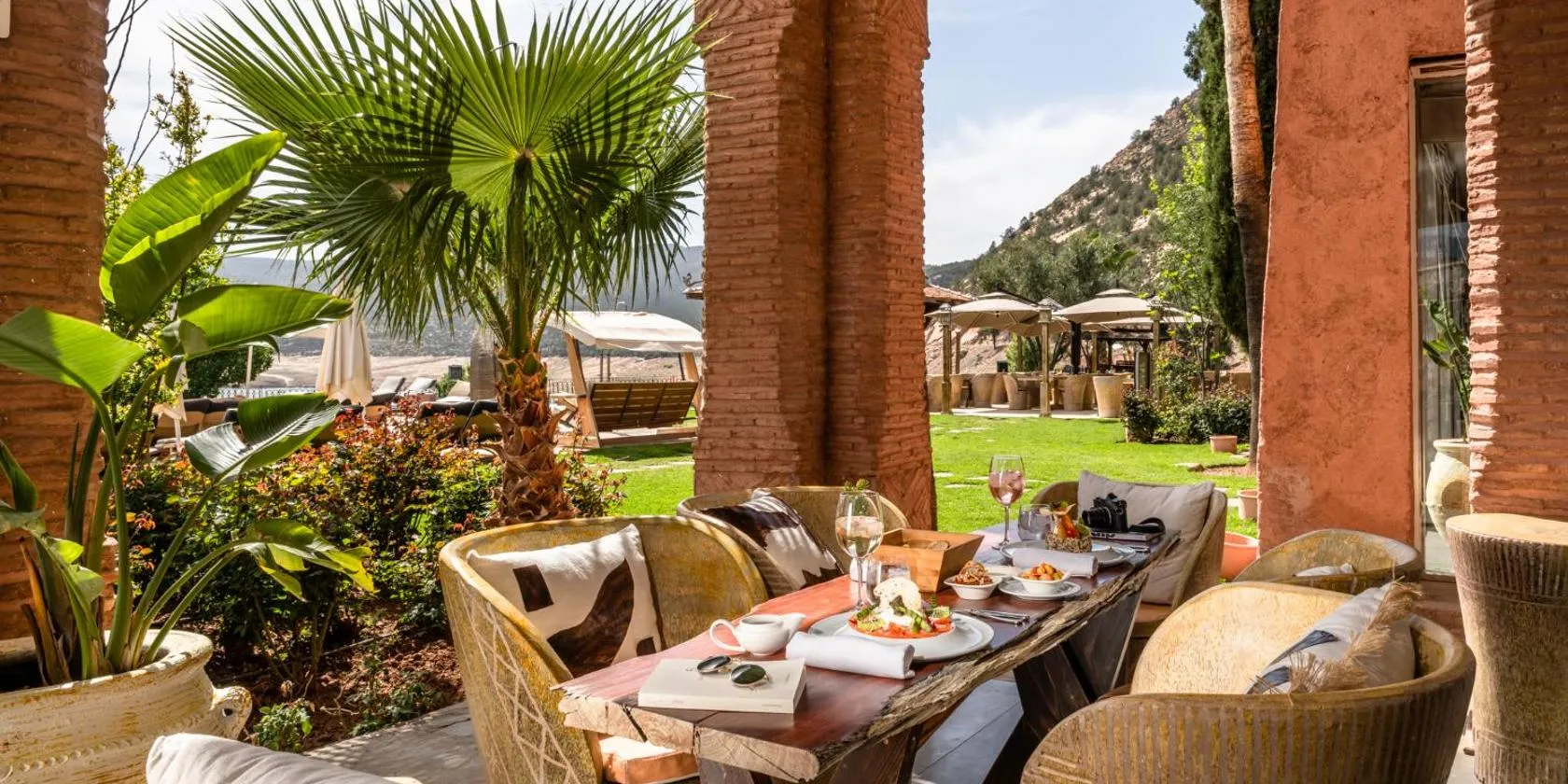 This luxurious 5-star hotel features a helipad and an infinity pool with superb views of the Atlas Mountains and lake bin el ouidane.