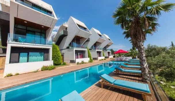 Turquoise Pool Side Thymus Resort si trova a Himare, a 200 metri da Spiaggia di Palasa e 44 km da Kuzum Baba.