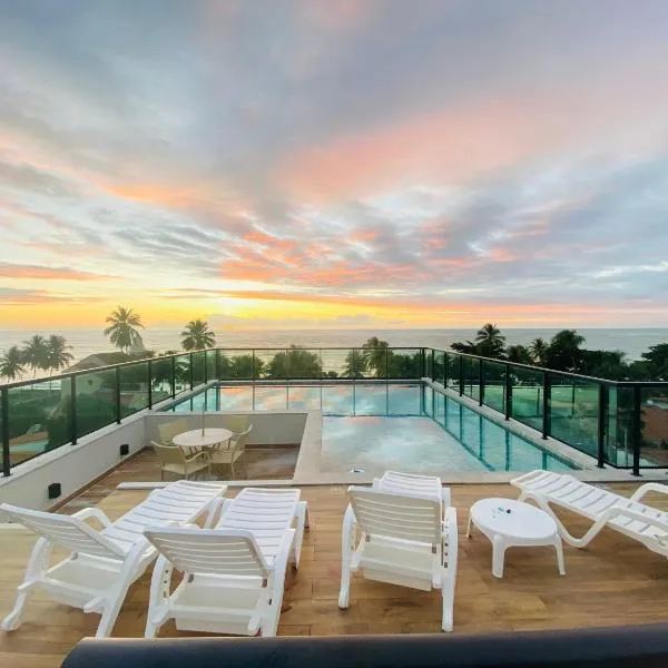 Flat em Tamandaré Mila Rooftop - Carneiros se nachází v destinaci Tamandaré a poskytuje venkovní bazén, zahradu, soukromou pláž, sdílený lounge, terasu a výhled na moře.