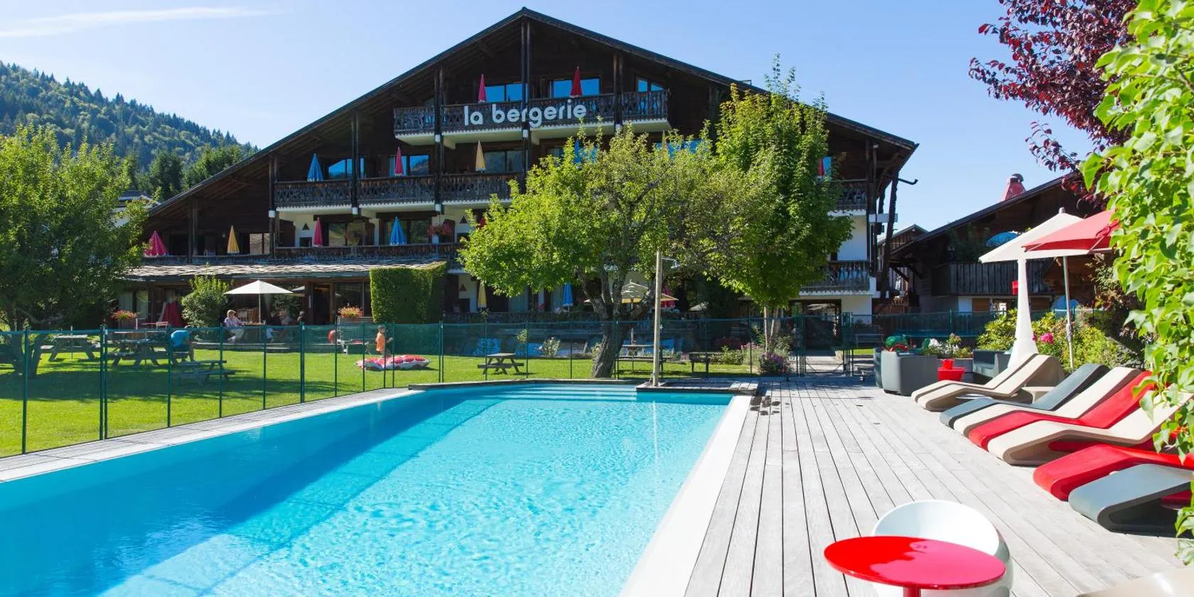In the heart of the market town of Morzine, in a garden with a heated, outdoor pool, this hotel proposes a bar, terrace and sauna.