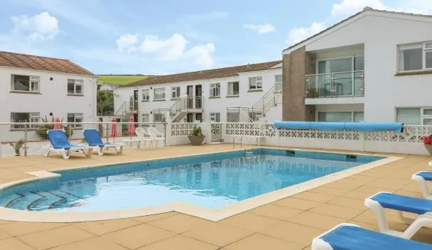 Prime coastal and centrally located apartment close to all main beaches and town centre Access to indoor pool facilities si trova a Newquay e offre una piscina privata e la vista sulla piscina.