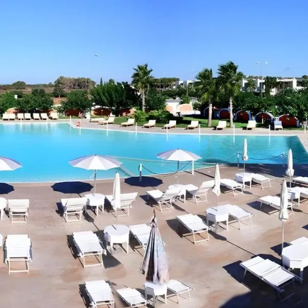 Pino Resort with shared pool se nachází v destinaci Torre Lapillo a nabízí sezónní venkovní bazén a bar. Pláž Spiaggia di Torre Lapillo se nachází 1,4 km daleko a Náměstí Mazzini 32 km.