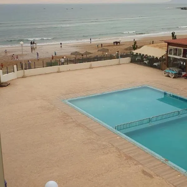 Con un patio che affaccia sul mare, una piscina all'aperto e una zona spiaggia privata, Aourir Beachfront Surf Apartment si trova ad Aourir, vicino a Banana Point e a 2,8 km da Spiaggia di Imourane.