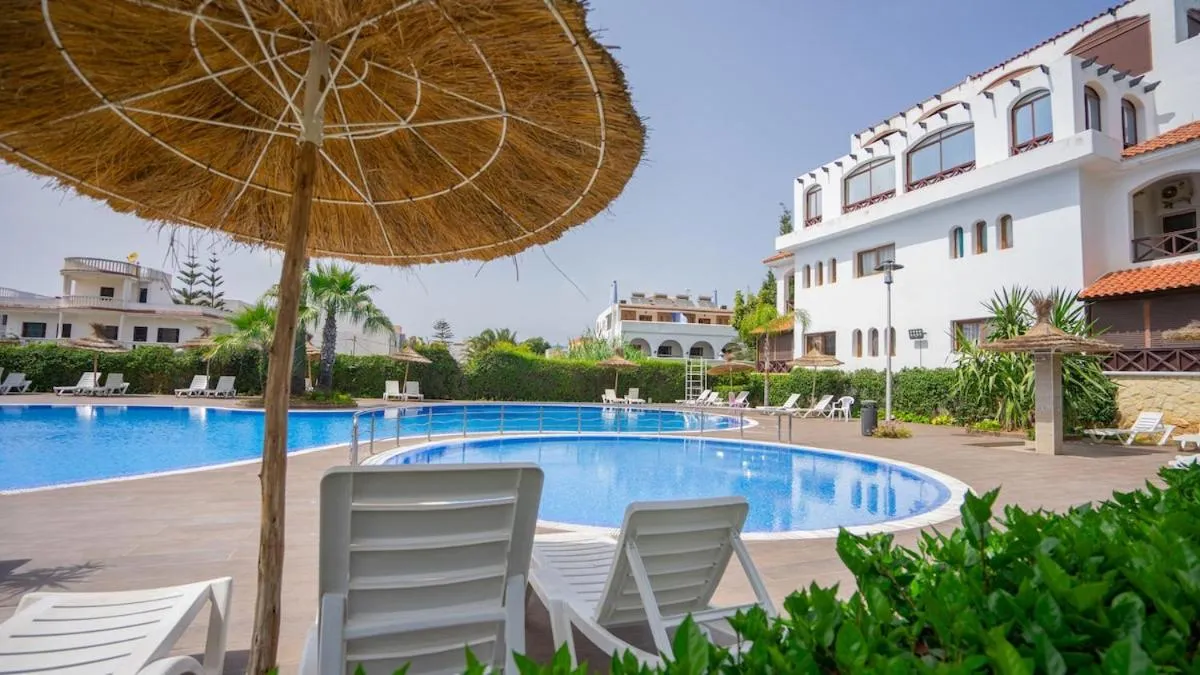 Complex Gardenia Martil con piscina y garage 2 habitaciones terraza grande y salón se nachází v destinaci Martil a poskytuje ubytování s balkonem, zahradu a venkovní bazén.