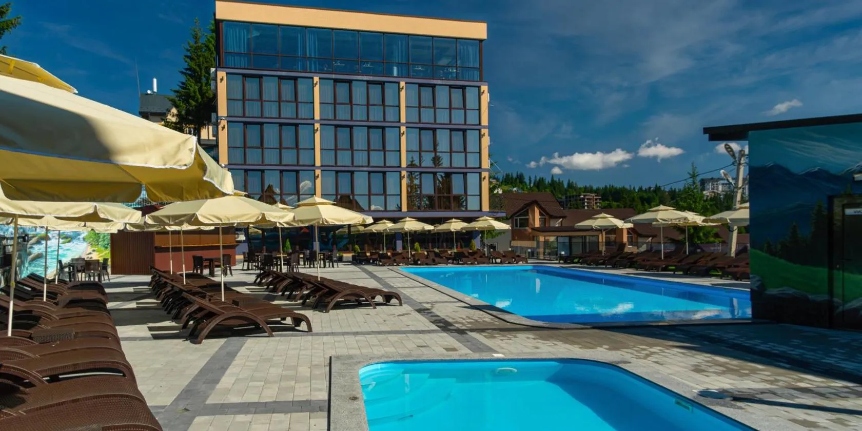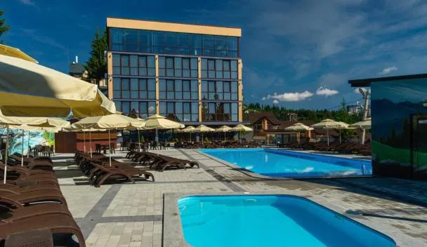 Located in Bukovel, 31 km from Waterfall Probiy, Севеней Готель provides accommodation with a seasonal outdoor swimming pool, free private parking, a terrace and a restaurant.