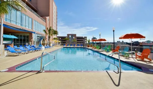 This Ocean City, Maryland hotel is located on the shore of the Atlantic Ocean. It features an Olympic-sized swimming pool in a 4-story tropical atrium and several on-site restaurants.