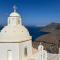 La stanza ha un terrazzino piccolo privato, più una terrazza in comune ed un solarium con vista sulla caldera. Dal terrazzo si vede la cupola di una chiesa oltre le sue tre Campane e la vista asseriva da un lato a Vulcano e dall'altra sulla piazza di ingresso a Fira