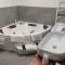 Le garage pour la moto L'accueil Le spa inclus avec la chambre Le petit déjeuner