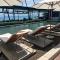 Très grande chambre, avec 2 chambres chacune avec SDB, douche puissante et spacieuse, un coin cuisine avec un grand frigo, un coin salon et un coin salle à manger. Chambre très propre. Balcon avec vue sur la mer. Très bon rapport qualité prix. Belle plage avec transats dispos. eau chaude et la profondeur est idéale (pour les adultes)