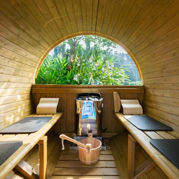 イヌサウナリゾート伊豆白浜 愛犬と焚火とバレルサウナの暖かいヴィラ se nachází v destinaci Šimoda a nabízí ubytování s bezplatným Wi-Fi, klimatizací a venkovním bazénem.